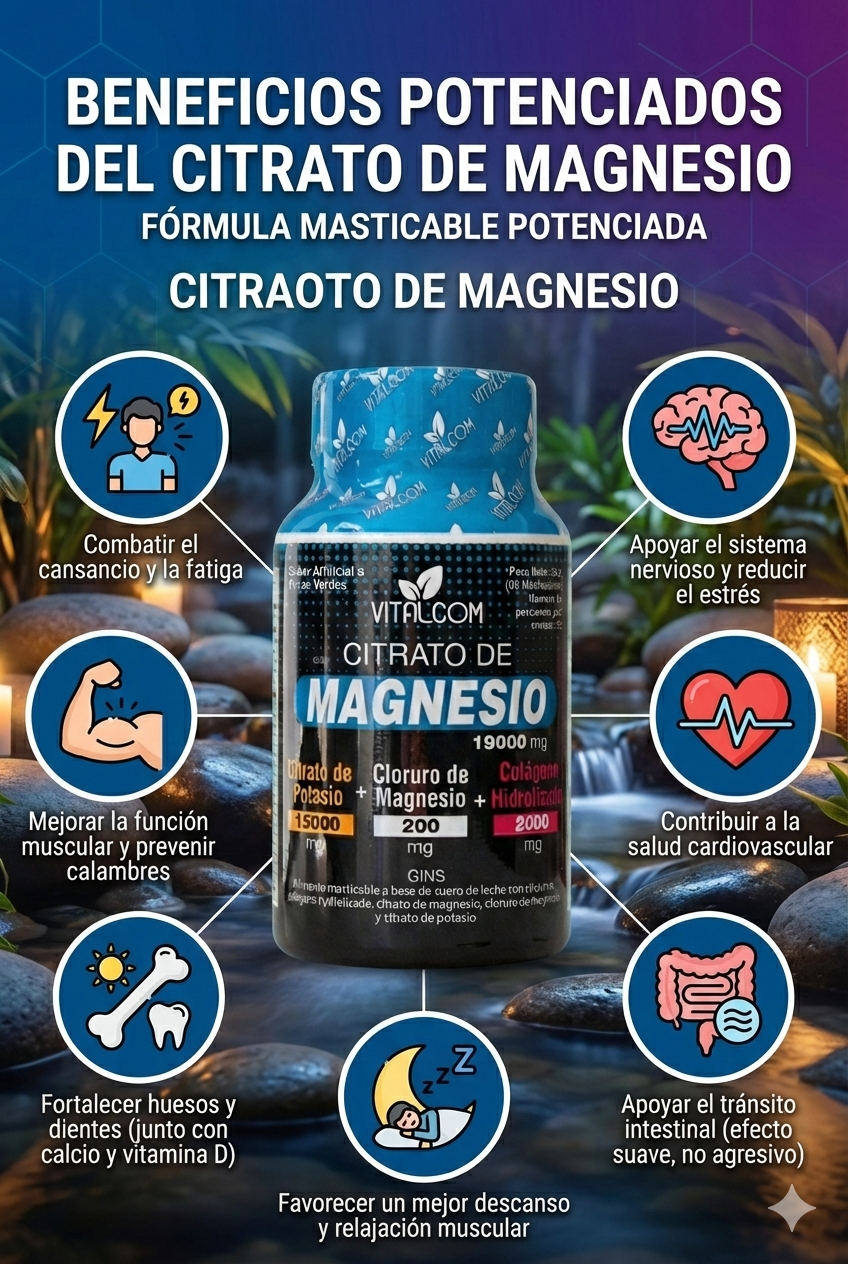Citrato de Magnesio es un suplemento comestible con alta absorción, tu cuerpo recibe lo que realmente necesita para recargarse de energía, dormir mejor, fortalecer músculos, articulaciones, calmar la ansiedad y el estrés y hasta cuidar tu piel y cabello. 💪✨