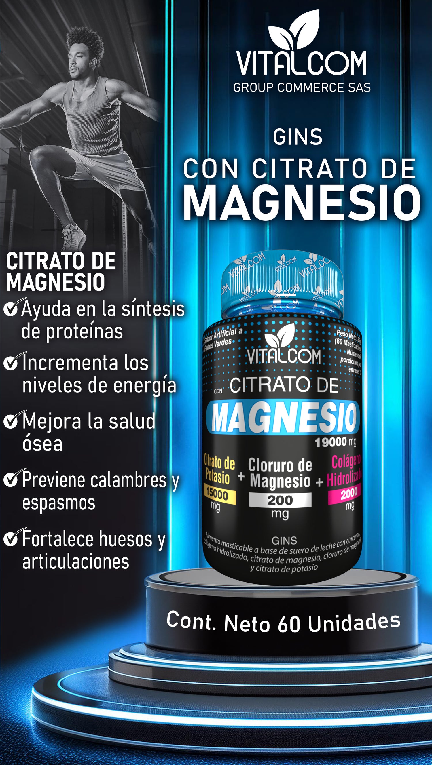 Es un alimento masticable a base de citrato de magnesio, una de las formas de magnesio mejor absorbidas por el organismo, combinado con otros minerales y vitaminas clave como potasio, calcio, zinc, vitamina C, complejo B y colágeno hidrolizado.
