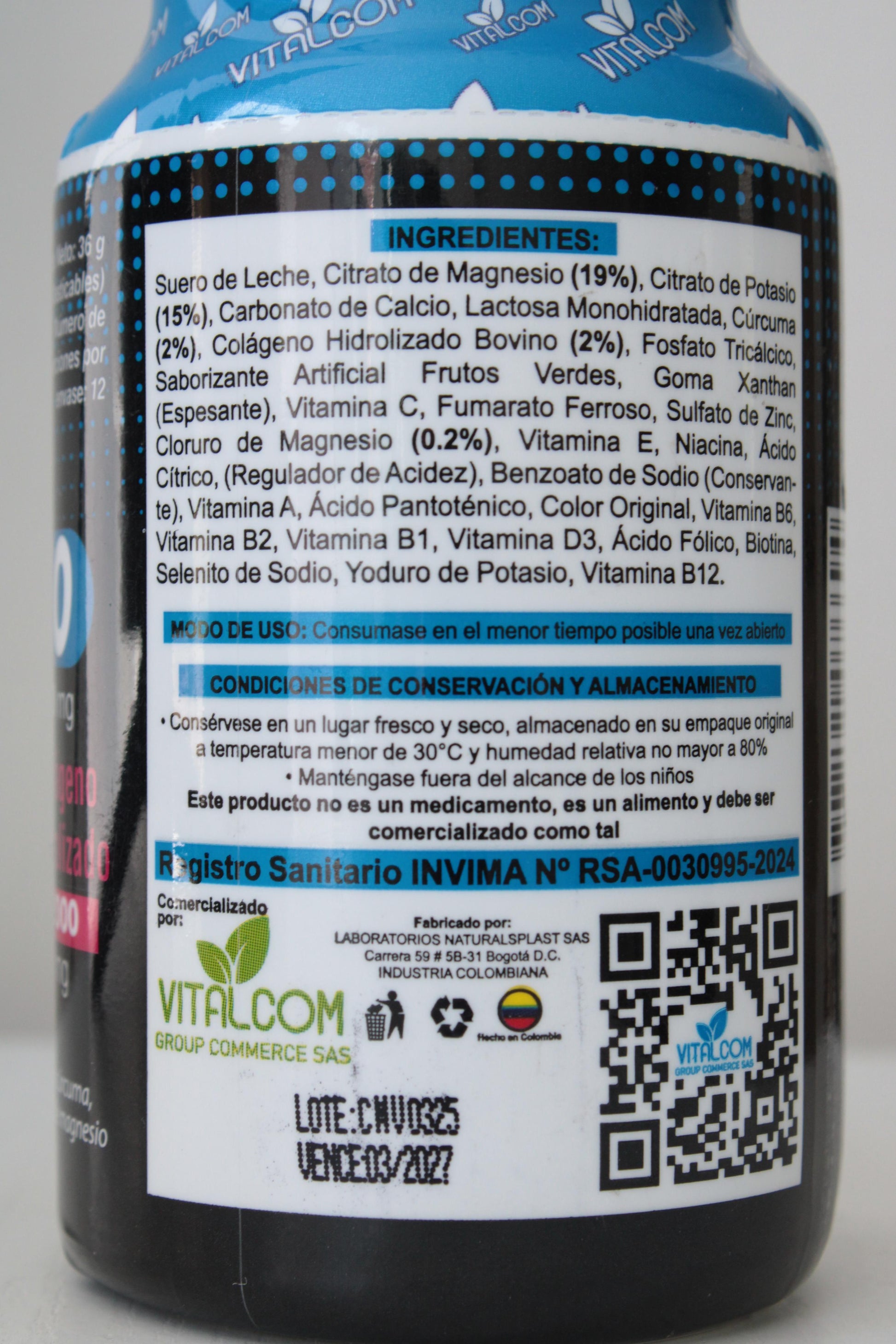 Sí. Cuenta con Registro Sanitario INVIMA N° RSA-0030995-2024, lo que garantiza cumplimiento de normas de calidad e inocuidad en Colombia.