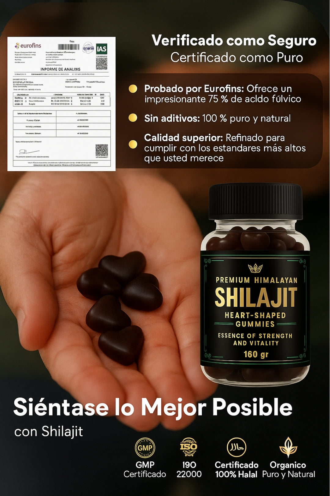 - Nuestro Shilajit Gomas es 100% natural, sin mezclas ni aditivos, asegurando la máxima concentración y efectividad para tu cuerpo.